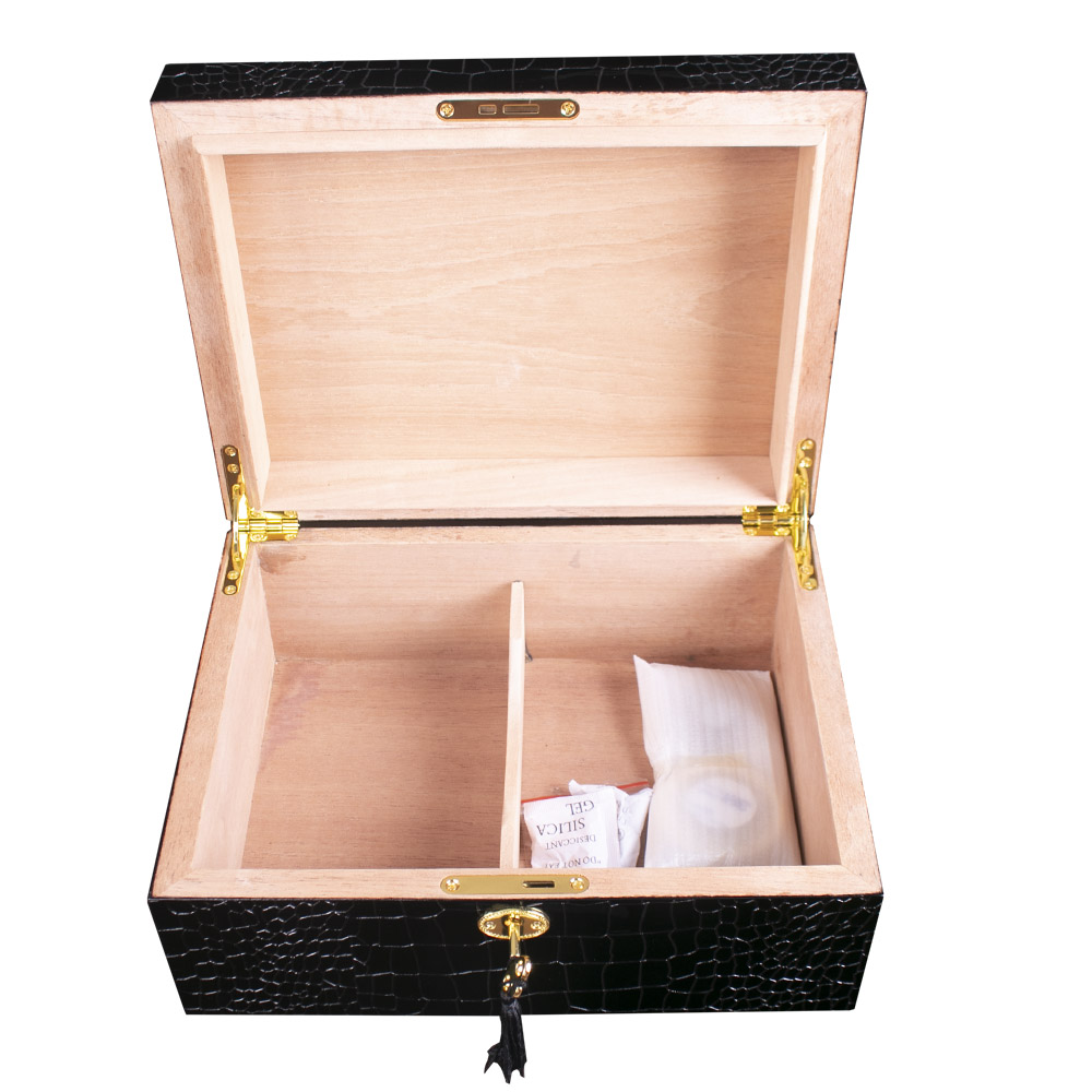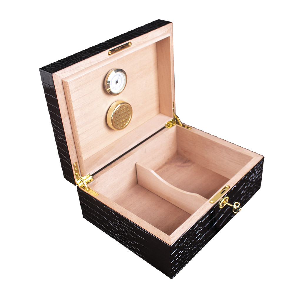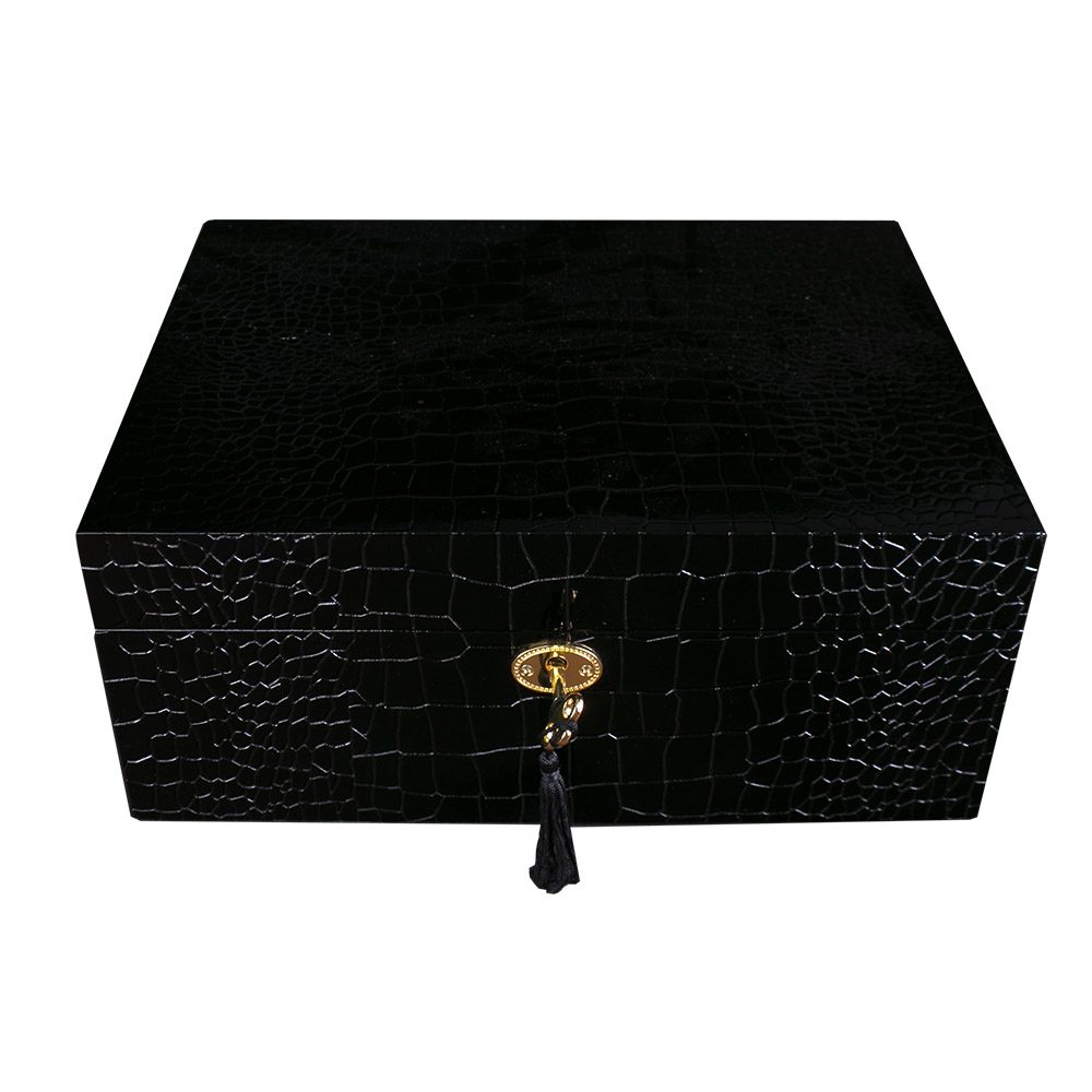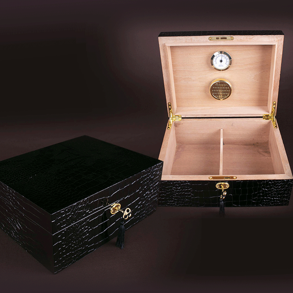 HUMIDOR DE MADERA CON DISEÑO REPTIL COLOR NEGRO PARA 35 PUROS CON LLAVE