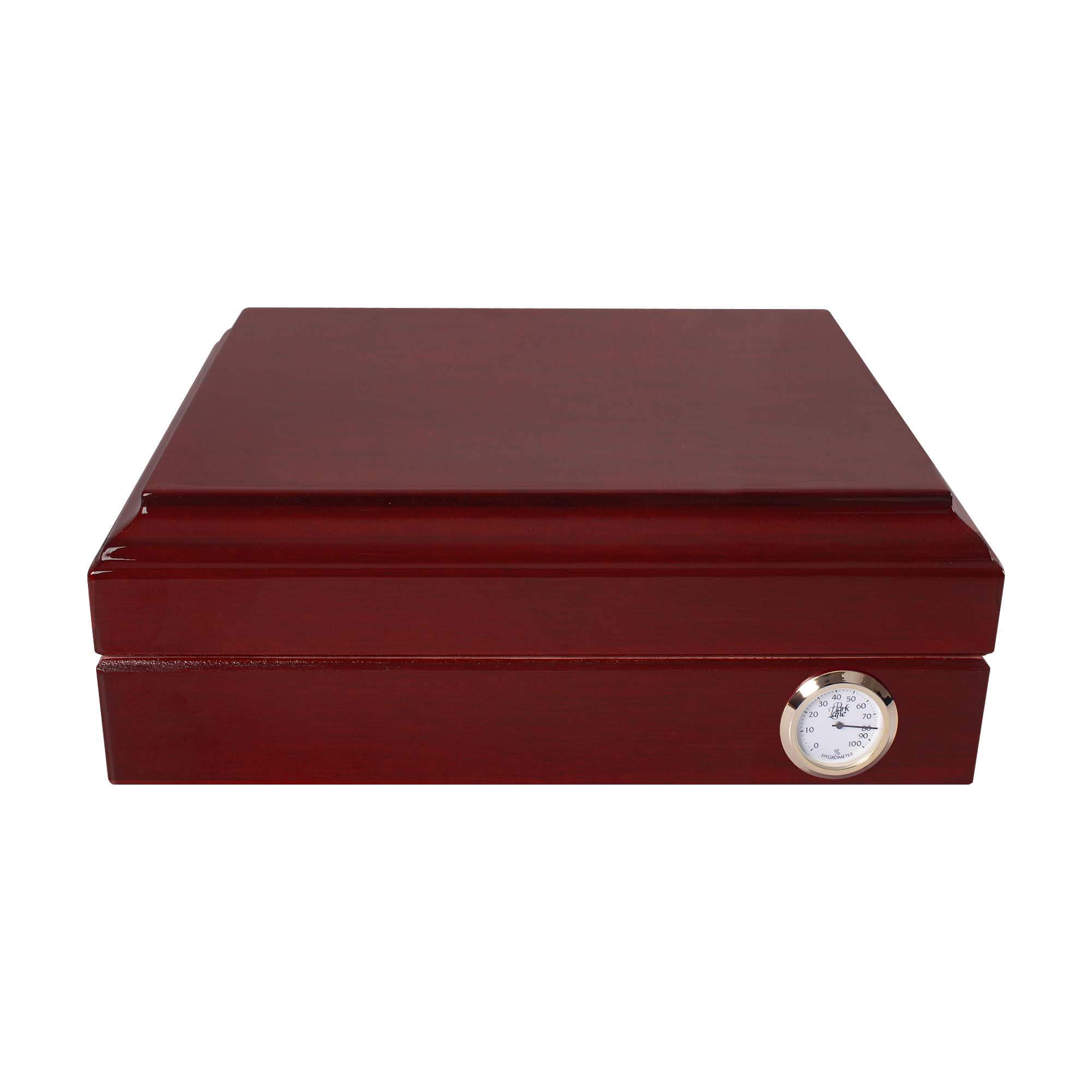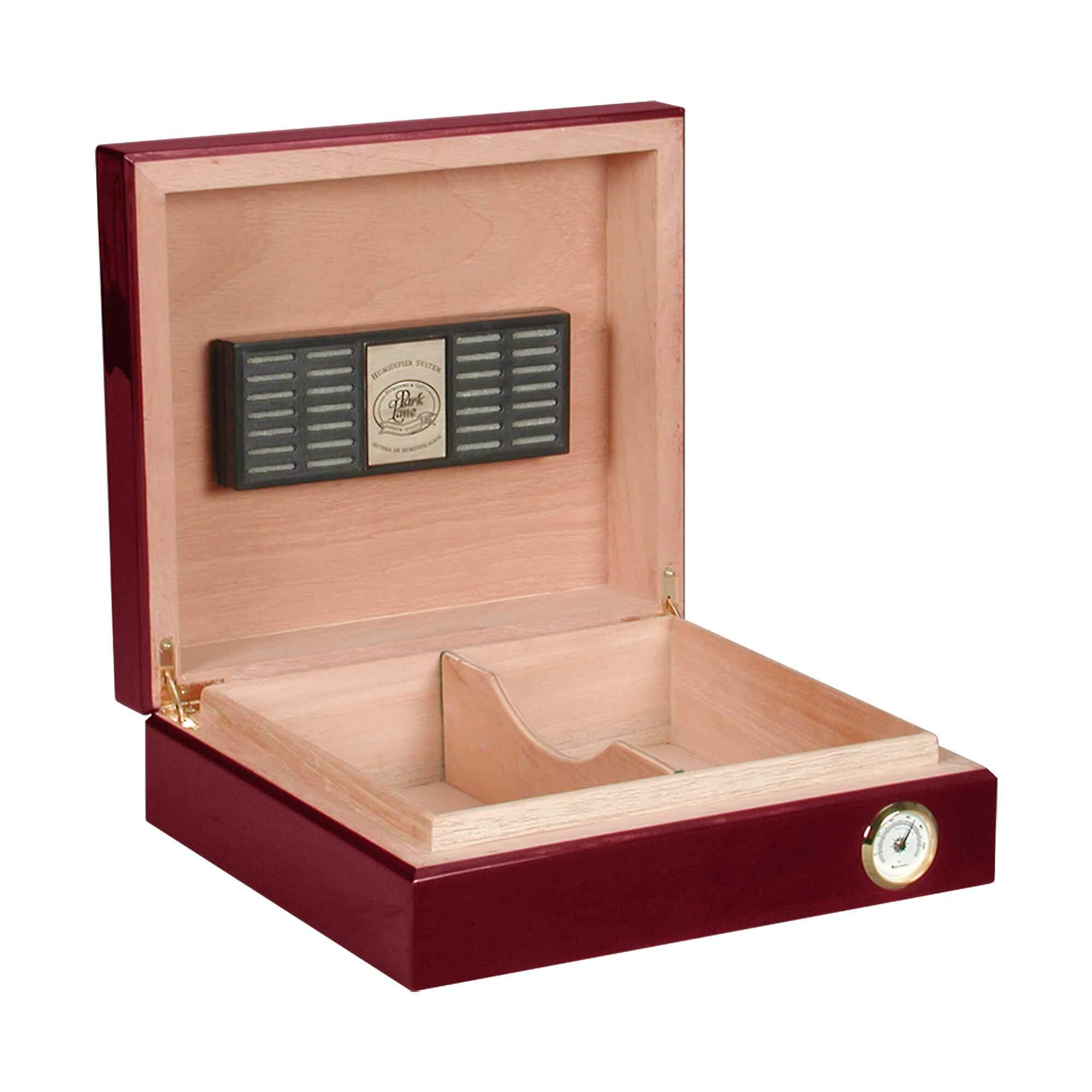Este humidor Park Lane puede almacenar hasta 30 puros o mas dependiendo del tamaño o vitola. La tapa de madera al interior cuenta con humidificador y en la parte frontal de la caja cuenta con higrómetro analógico, con el cual podrá regular la temperatura de acuerdo al ambiente en el que se encuentre.